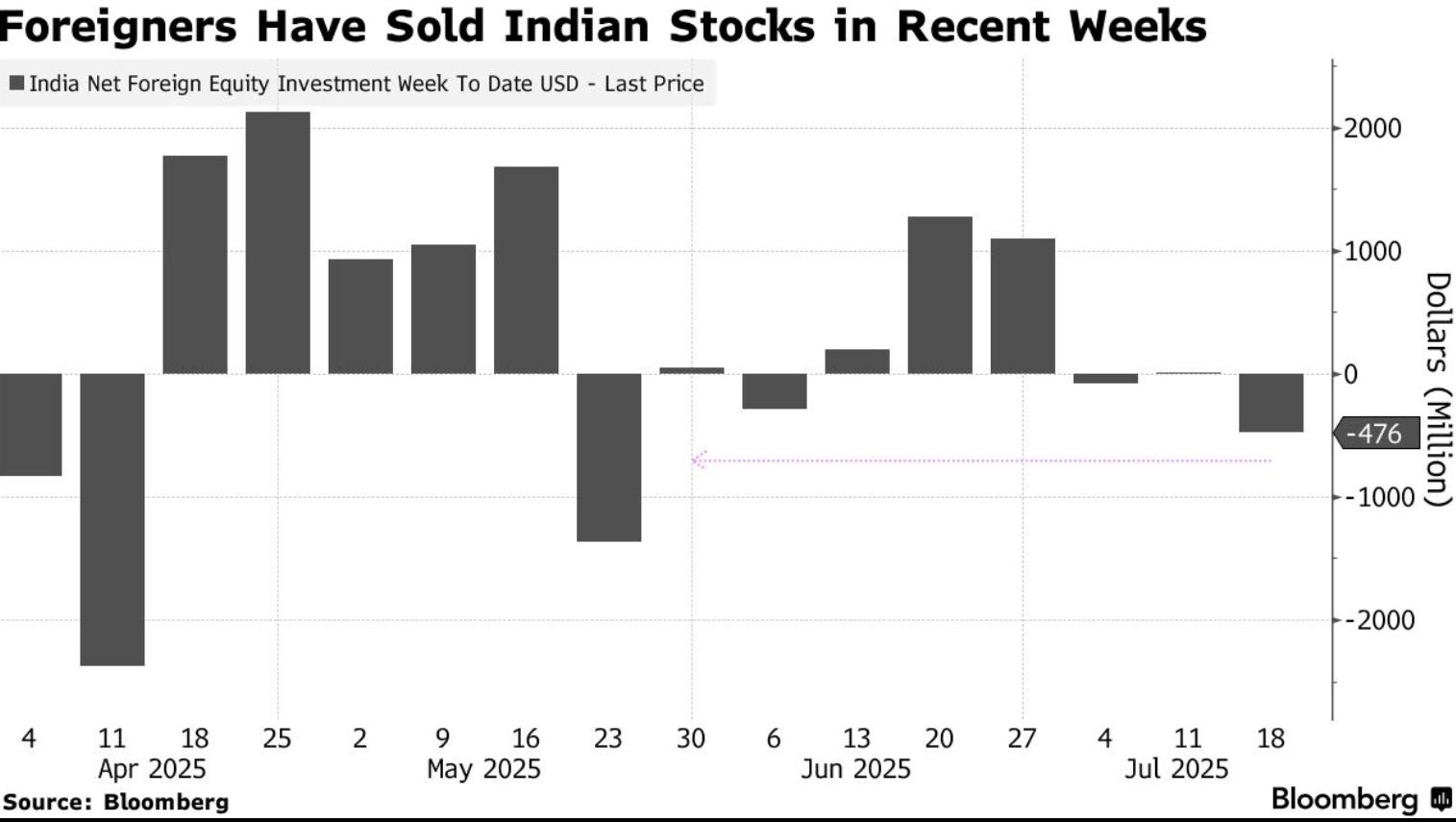 值得警惕的是,海外资金对印度股市的热情正在消退。3月至6月期间,全球基金曾净买入超50亿美元本地股票,但进入7月后态度趋稳,截至18日已撤出6.5亿美元。若此趋势延续,本月可能成为自2月以来首个外资净流出的月份。在业绩缺乏惊喜、估值仍处高位(Nifty指数较历史峰值下跌超5%)的背景下,指数快速反弹的预期正逐步弱化,市场或进入阶段性盘整期。